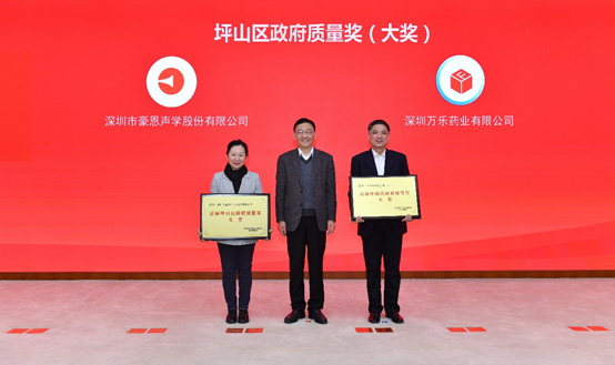 2020年9月,"首届坪山区政府质量奖 " 获奖名单正式出炉,深圳万乐药业荣获首届坪山区政府质量奖大奖。2021年1月14日,坪山区质量大会召开,隆重表彰首届坪山区政府质量奖获奖企业。