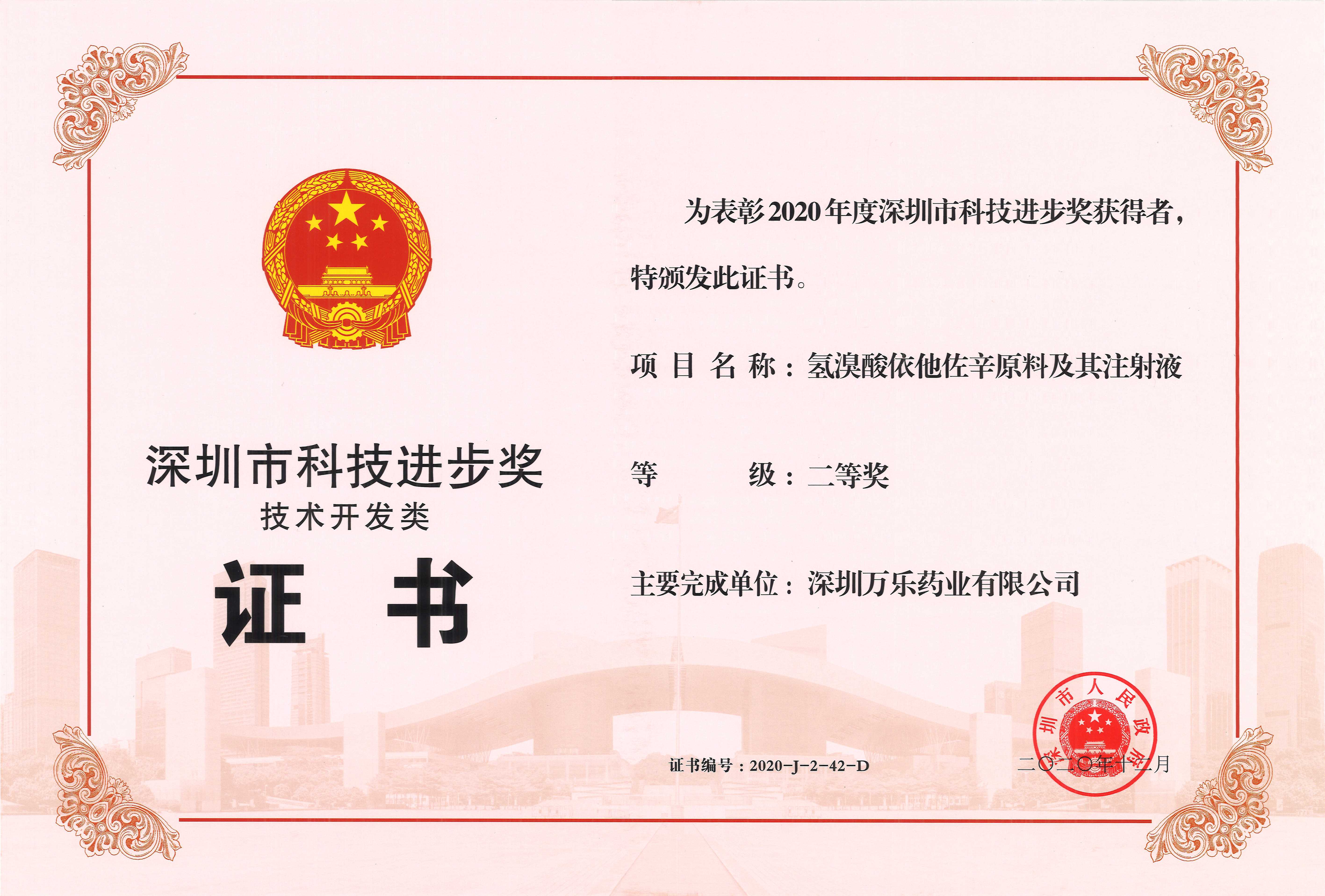 氢溴酸依他佐辛原料及其注射液获得深圳市科技进步奖